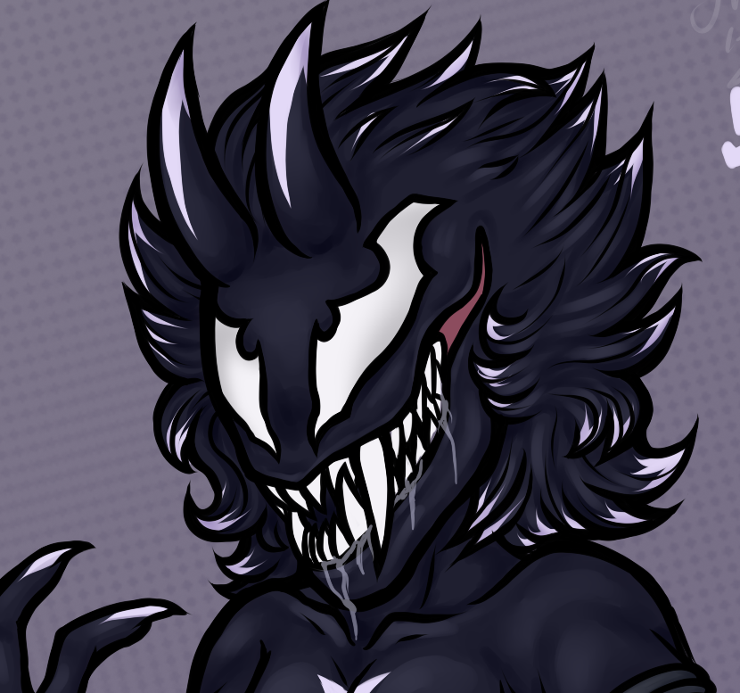 Sinner is a character i made when the first Venom film came out and I just wanted a little Venom of my own. this is a redesigned version of Sinner, he used to be black-and-gold but ive been feeling purple for this version.