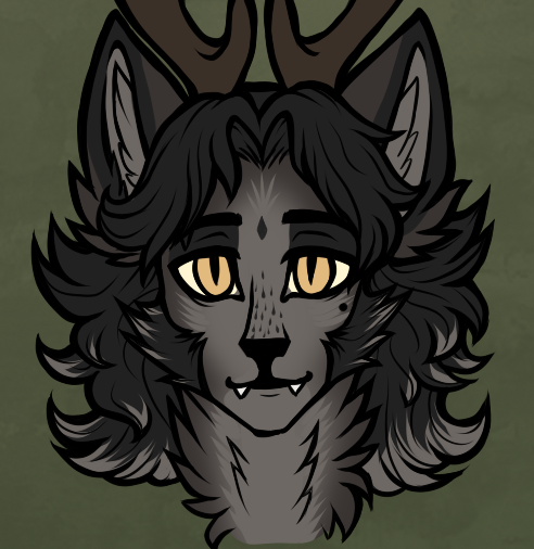 i have some ideas swirling around for a comic featuring werewolves and witches, and this guy is gonna be one of the characters. their name is cedar and they're not your typical werewolf, they're also half-stag. they don't know how they're like this, as they don't know their parents, but they don't seem to mind.